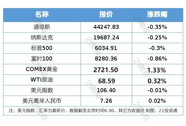 纽约股市三大股指12月10日集体收跌。轨则派天收盘,说念琼斯工业平均指数比前一贸易日下降154.10点,收于44247.83点,跌幅为0.35%;法式普尔500种股票指数下降17.94点,收于6034.91点,跌幅为0.30%;纳斯达克空洞指数下降49.45点,收于19687.24点,跌幅为0.25%。